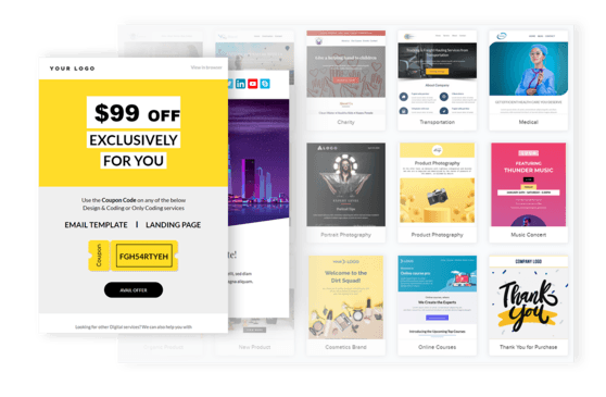 Start your email with one of our professionally‐designed templates to launch targeted campaigns like marketing offers, product announcements, newsletters, or event promotions.